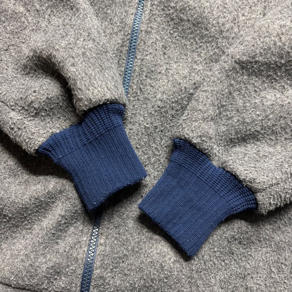 ふっくらとした厚手のフリースに、リブ仕様の袖口と裾が映えるシンプルデザイン。