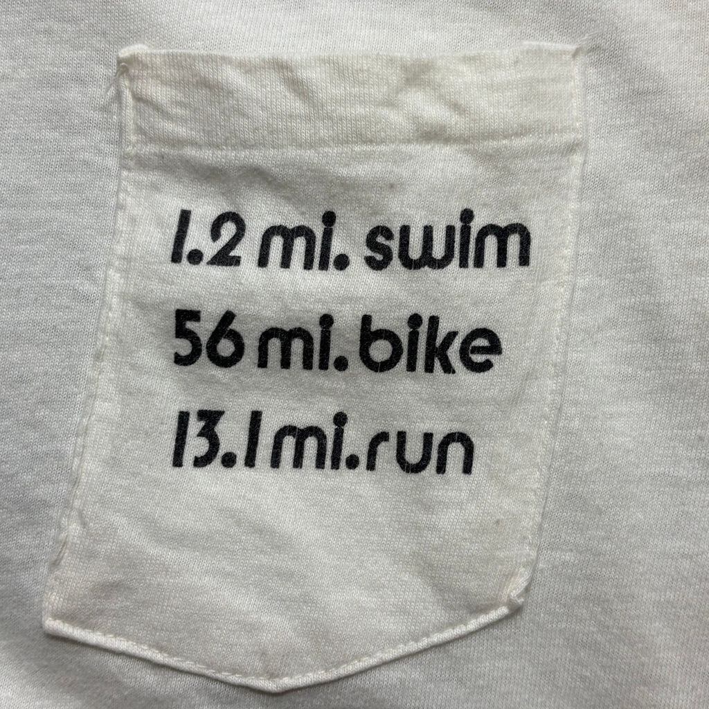「1.2 mi swim/56 mi bike/13.1 mi run」と競技距離がプリントされ、