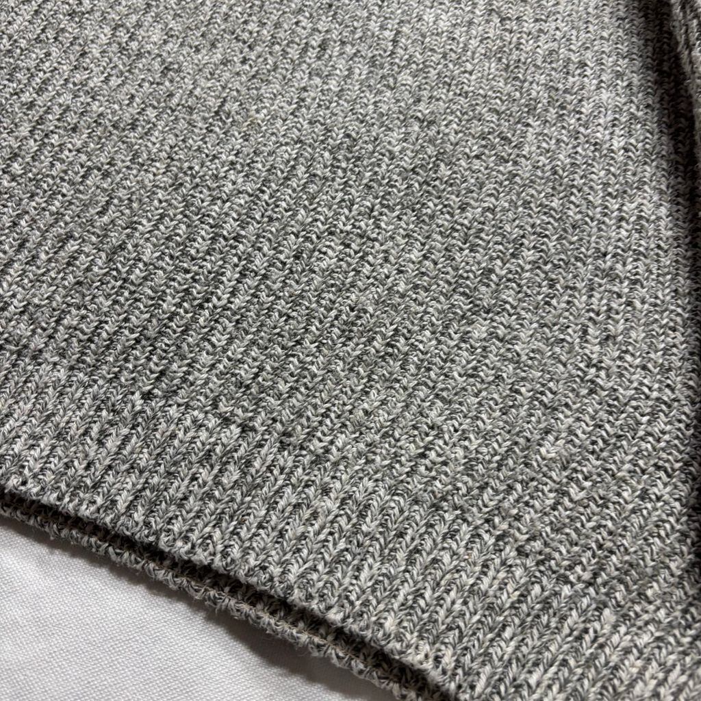 霜降りのようなグレーミックスの編み地が特徴で、ウールニットとはまた違う、軽さとラフさが魅力。