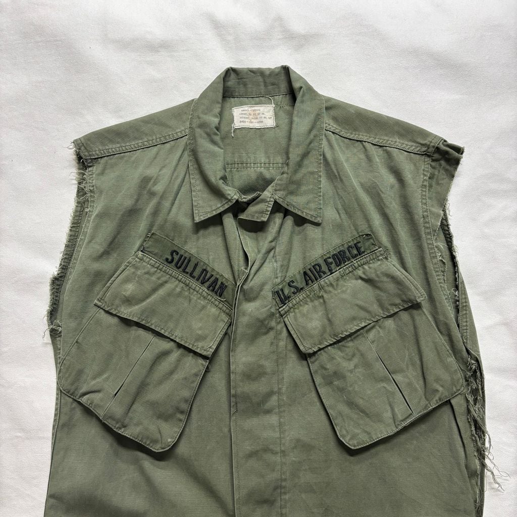 70年代・ベトナム戦争期の実物ジャングルファティーグをベストへカスタムした一着。