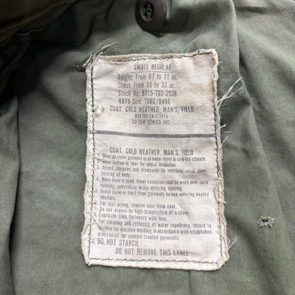 70年代アメリカ陸軍実物の M-65 フィールドジャケット。