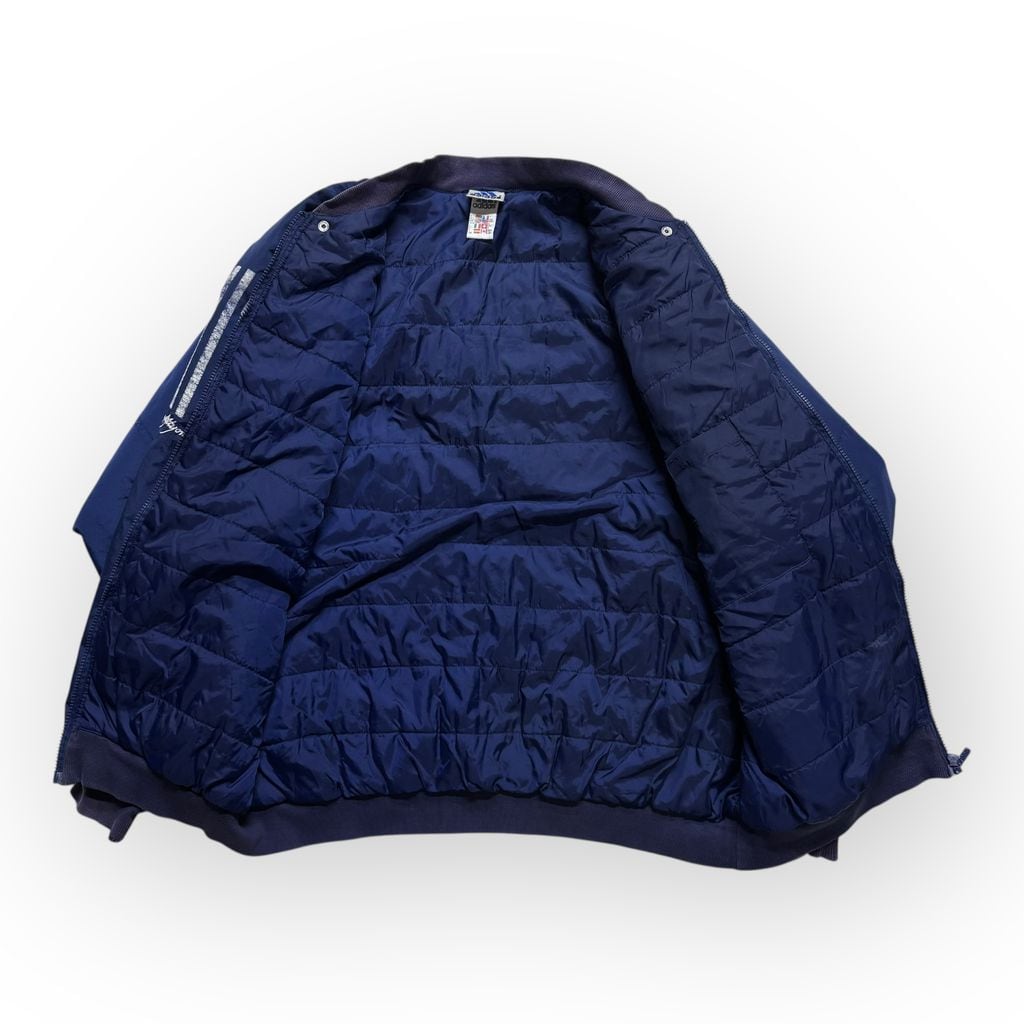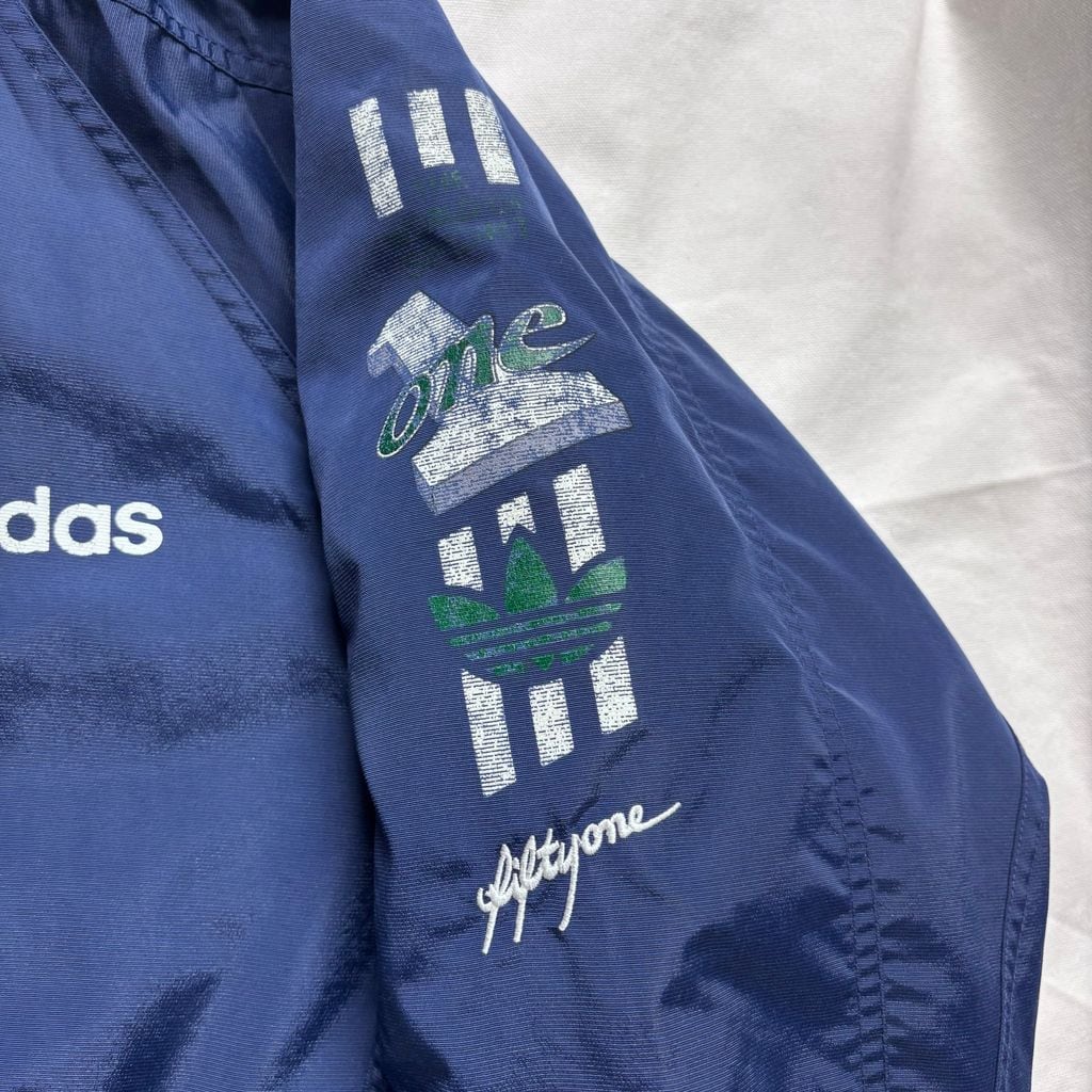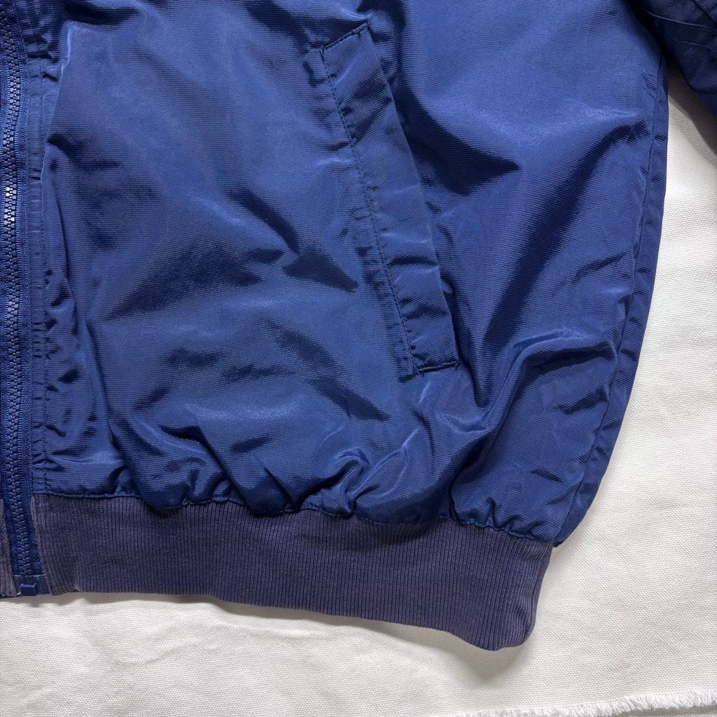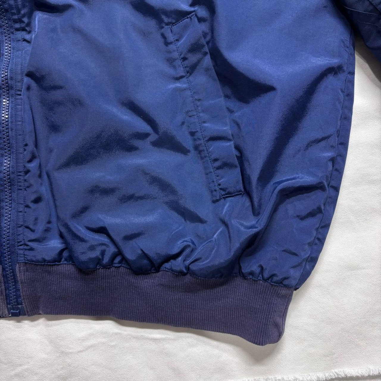 ネイビーの張り感のあるナイロンの光沢が絶妙で、袖のプリントがしっかり“90’s感”を演出してくれる一枚です。