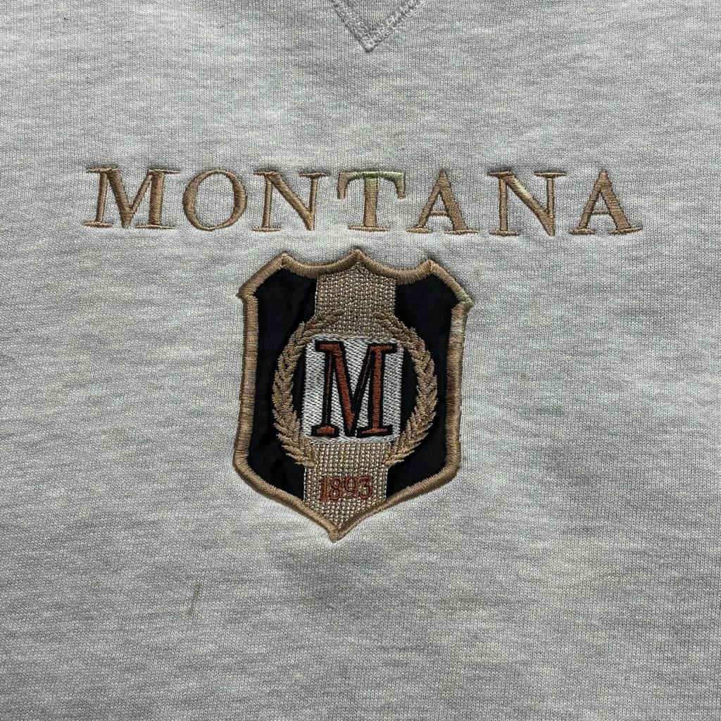 王道ヘザーグレーに、MONTANA の刺繍エンブレムが映える一枚です。