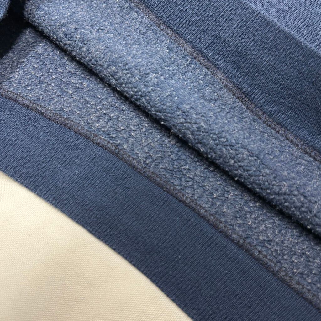 深いネイビーが程よく抜けて、柔らかい表情になった無地スウェット。