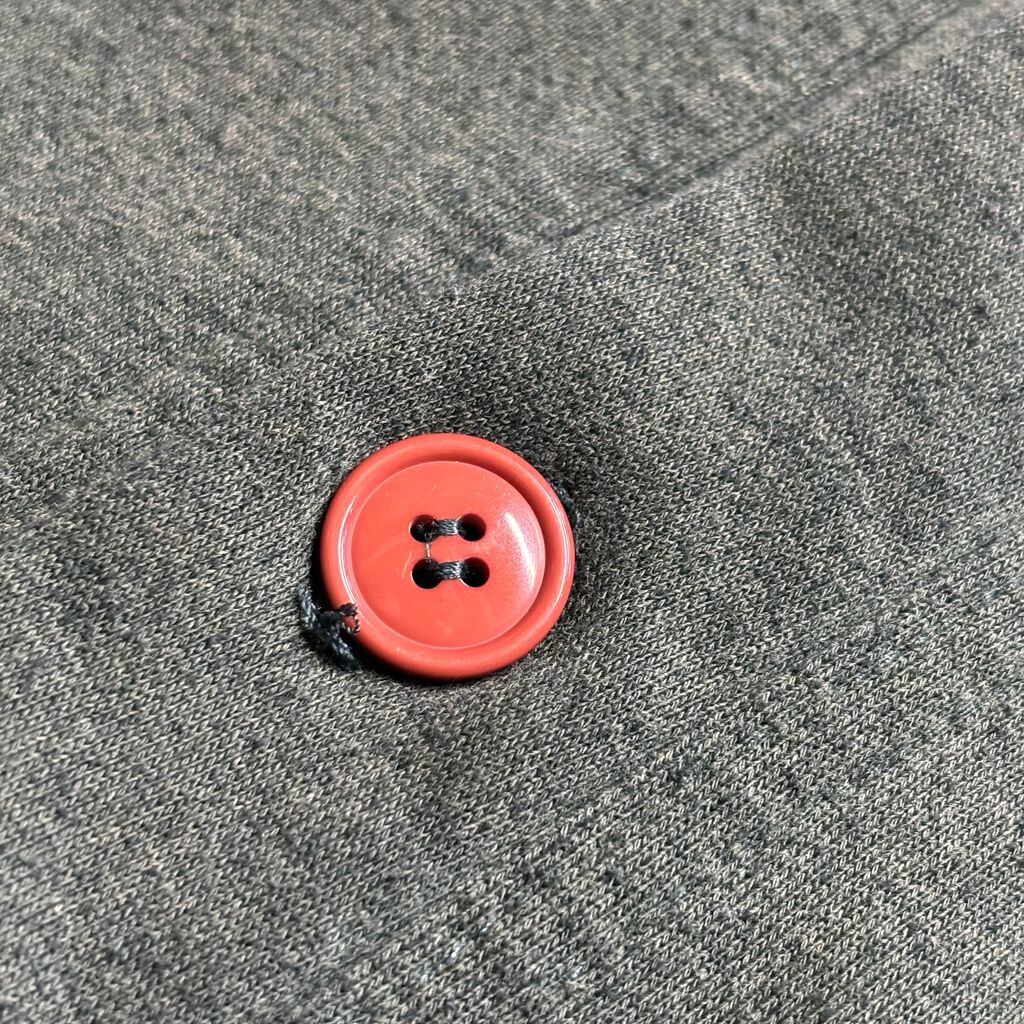 深みのあるフォレストグリーンに、大きめのボタンがさりげなく映える一着です。