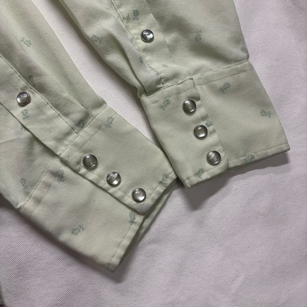 70s H BAR C Ranchwear ヴィンテージ ウエスタンシャツ 総柄 パールスナップ ライトグリーン アメカジ 古着 アメリカ古着 都内 中野区 古着屋
