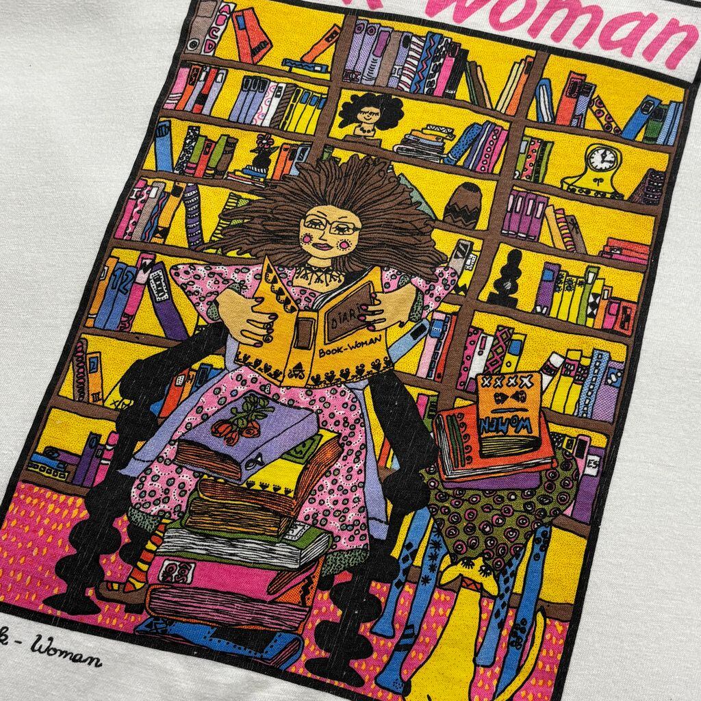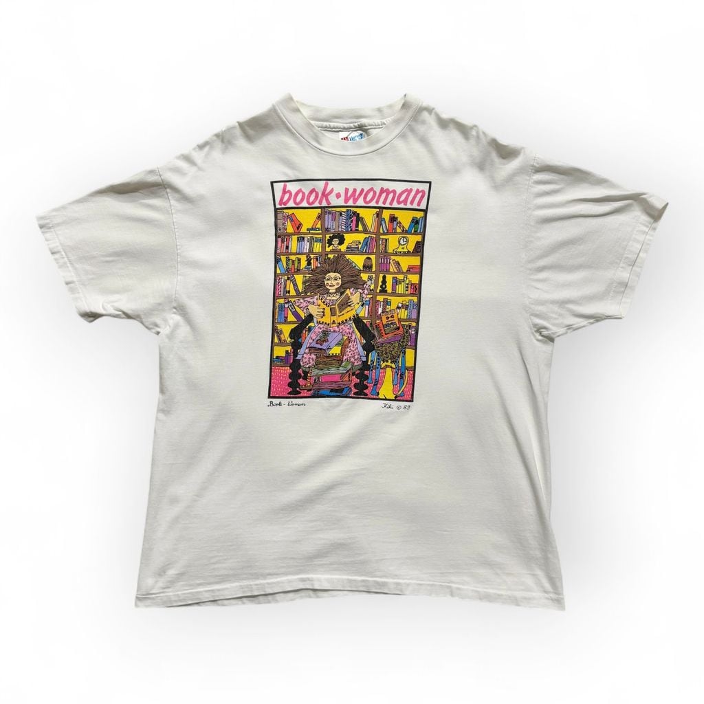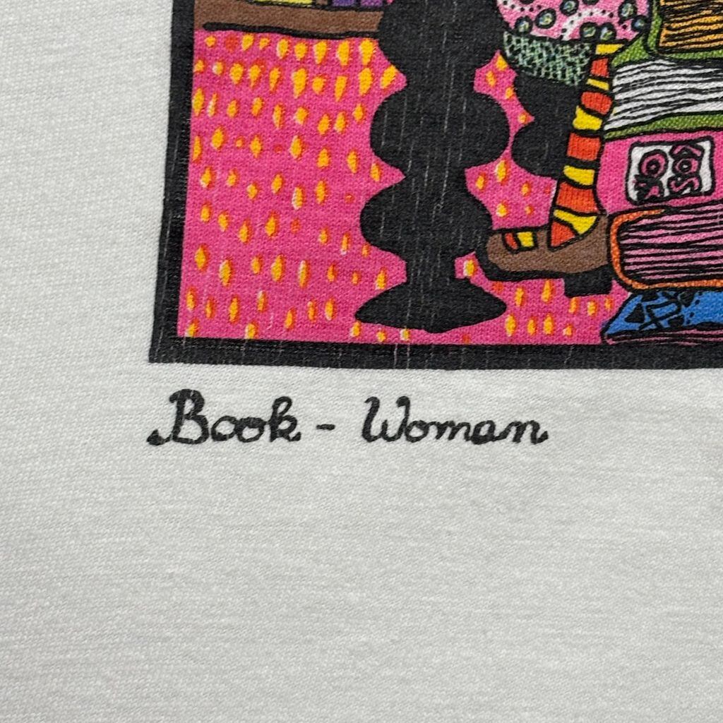 90s USA製 キキスアレス アートTシャツ Hanes BEEFY-T Book Woman Kiki Suarez 1989 ヴィンテージ シングルステッチ XL相当 ポップアート 古着