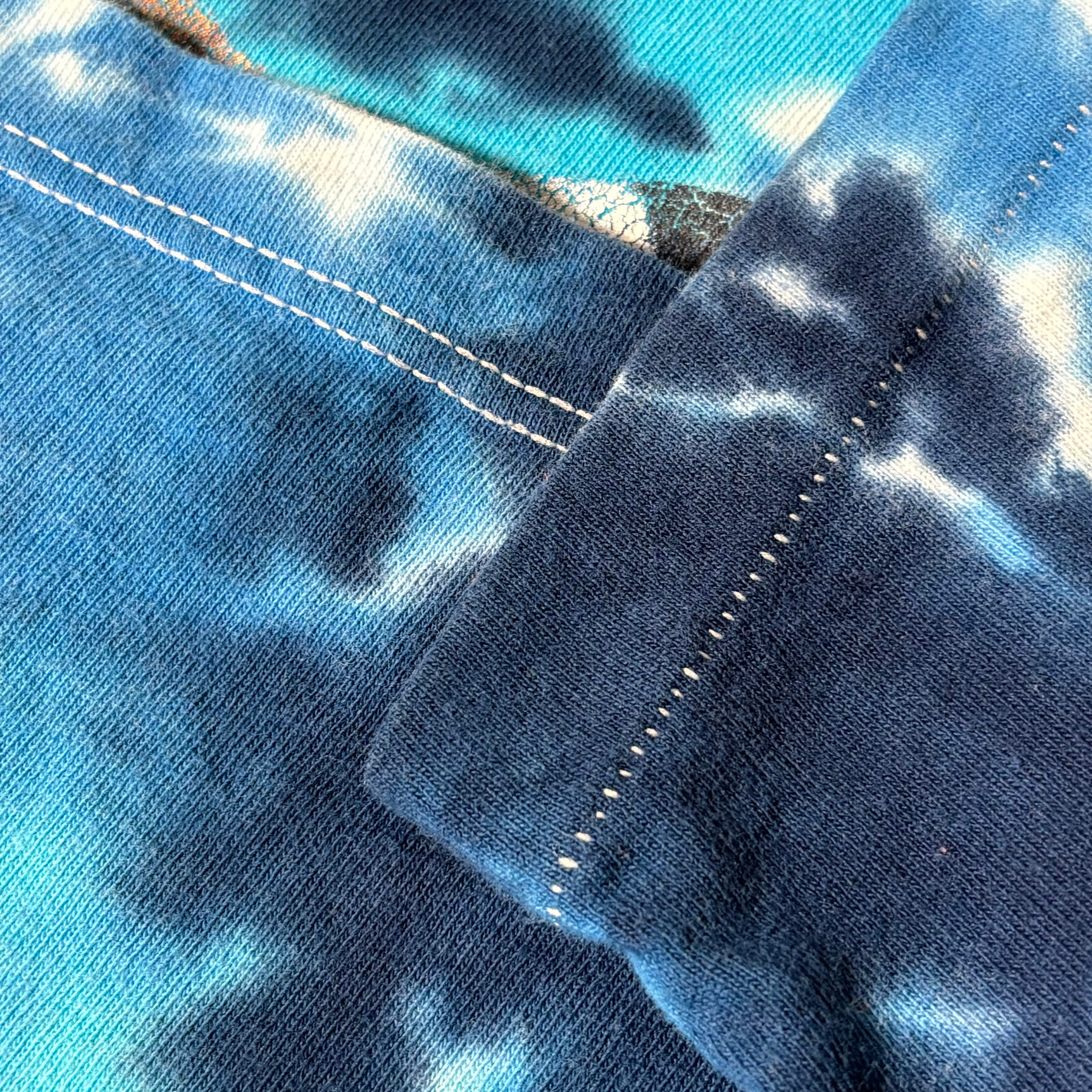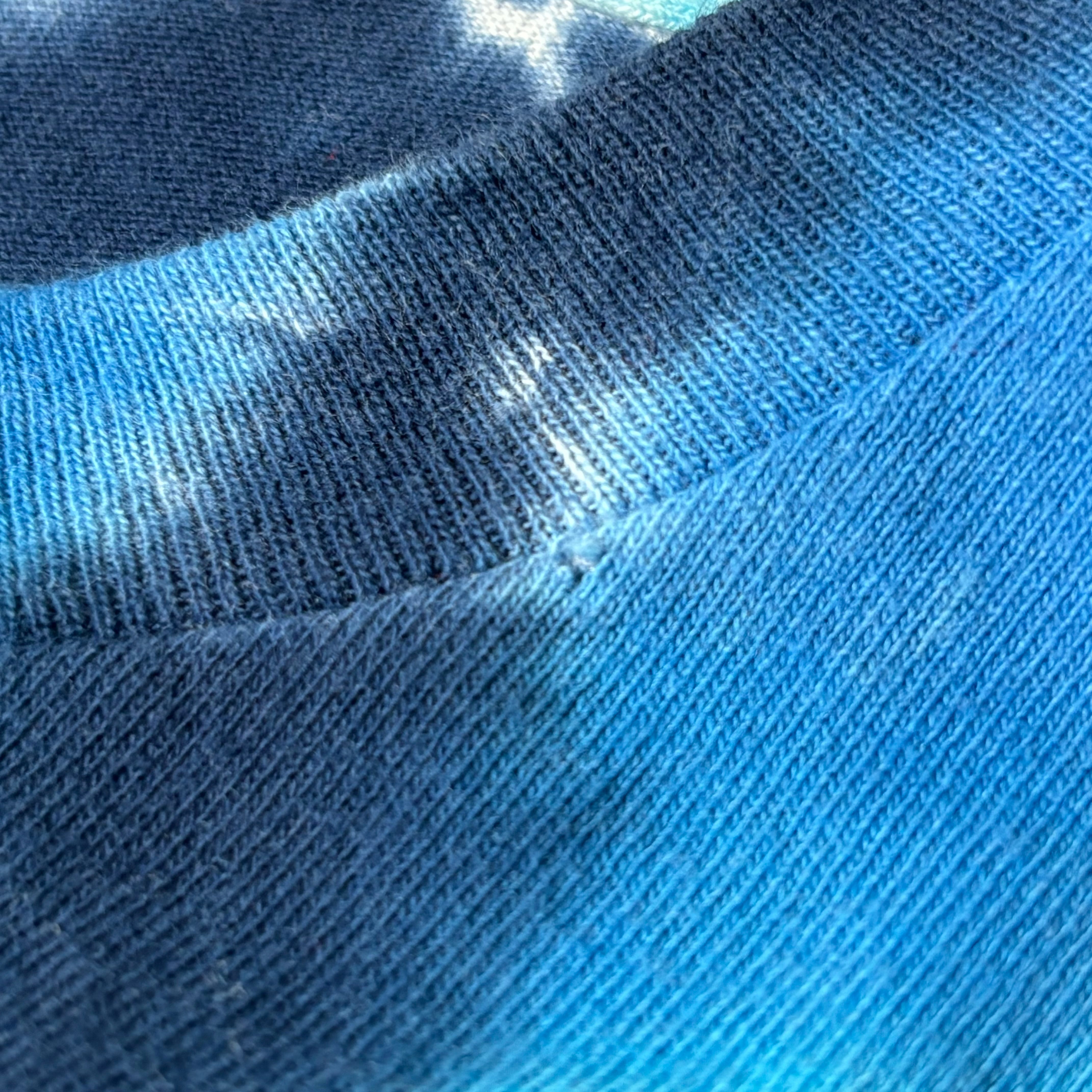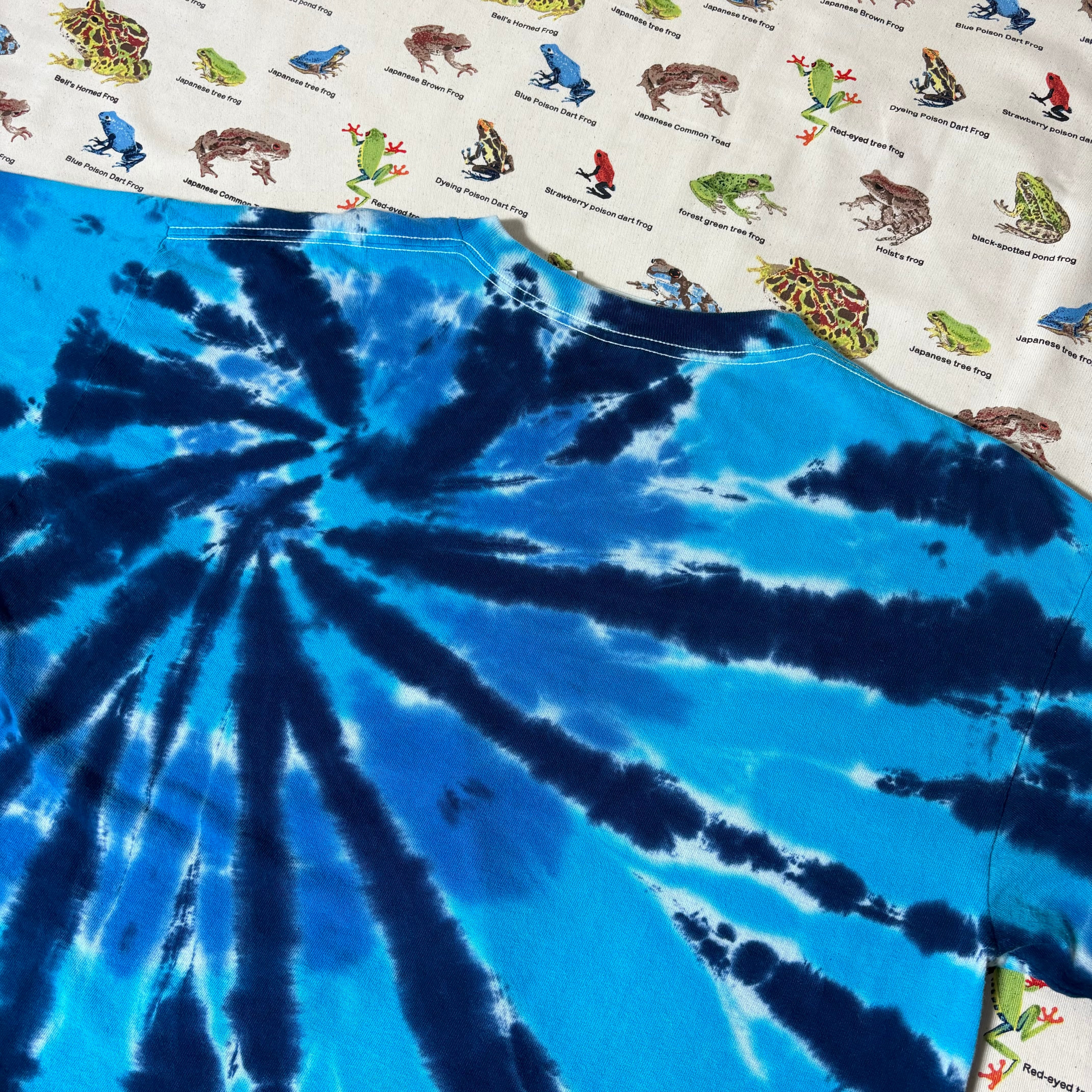 インパクトあるブルー系のタイダイ染めボディ。